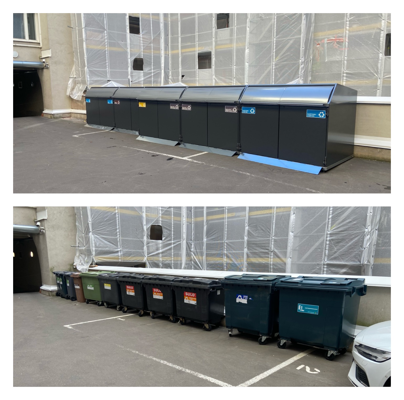 • Fireproof shelters for garbage containers